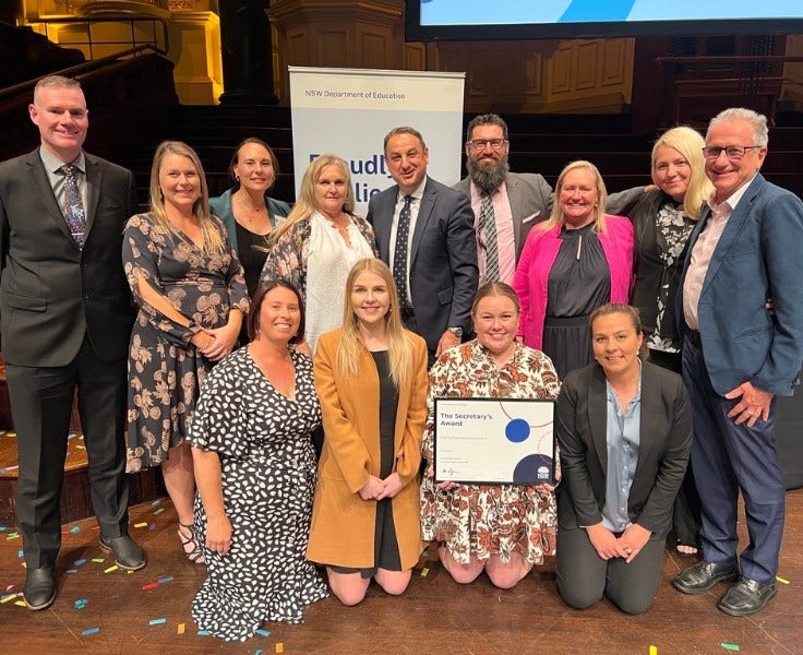On Tuesday evening, several staff members representing Forbes Public School travelled to Town Hall in Sydney to receive the Secretary’s Award for School Achievement. The Hon. Prue Car was in attendance along with the Secretary of the NSW Department of Education Murat Dizdar. While all staff could not attend the event in Sydney, they watched a live stream of the presentation and enjoyed a meal together, celebrating the award in Forbes.
